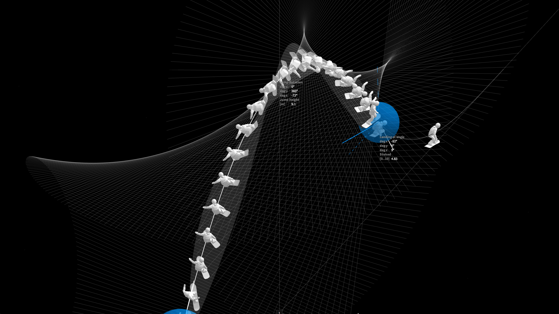 At my MA studies at Royal College of Art I investigated the relationship between people, machines and data. One of the results was Computers Falling in Love (2013), a media installation creating a feedback loop between two computers. My final work was the animated data visualisation A Computer Learning How To Snowboard (2014) showing the process of a machine exploring and understanding athletic movements.