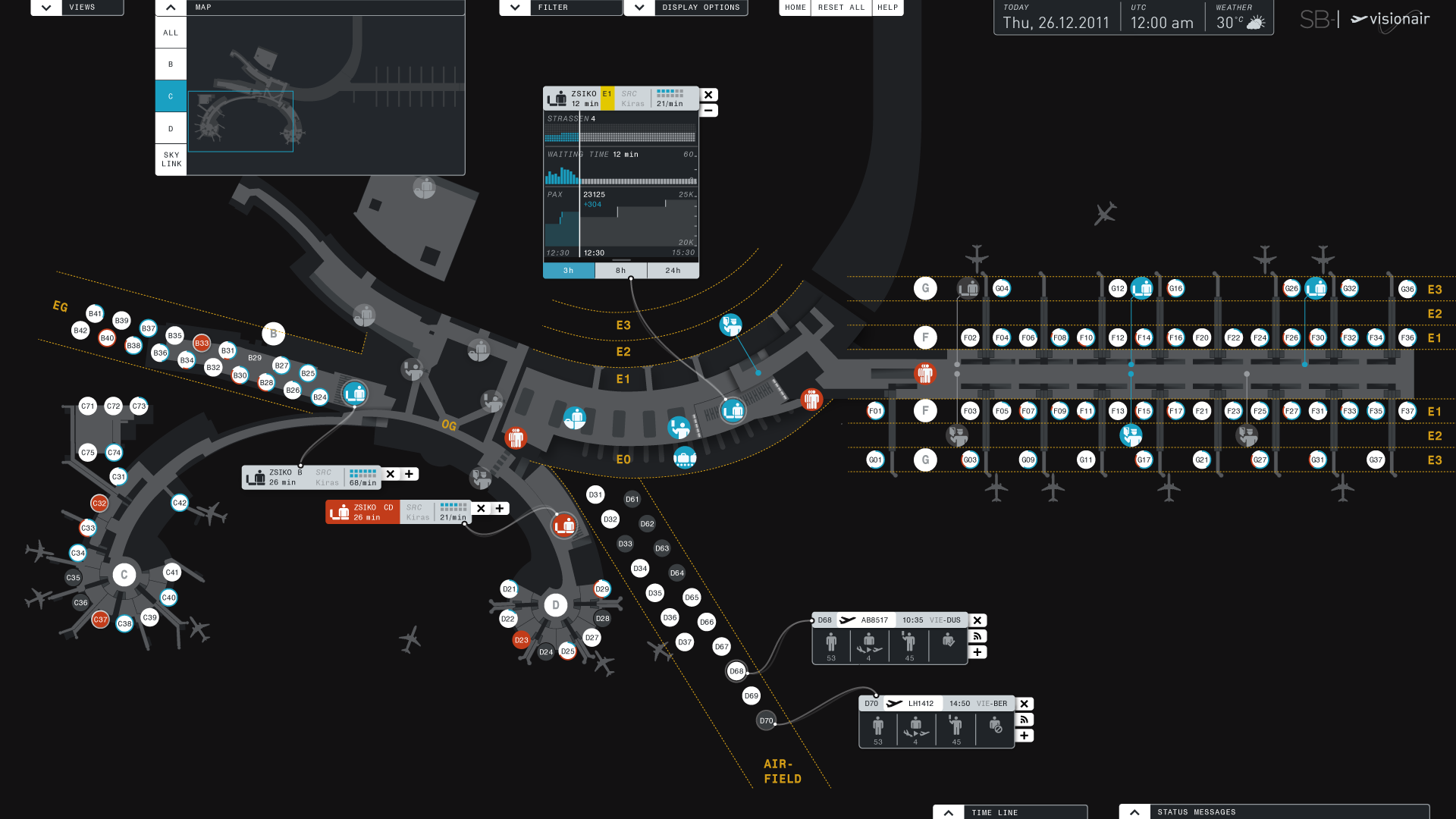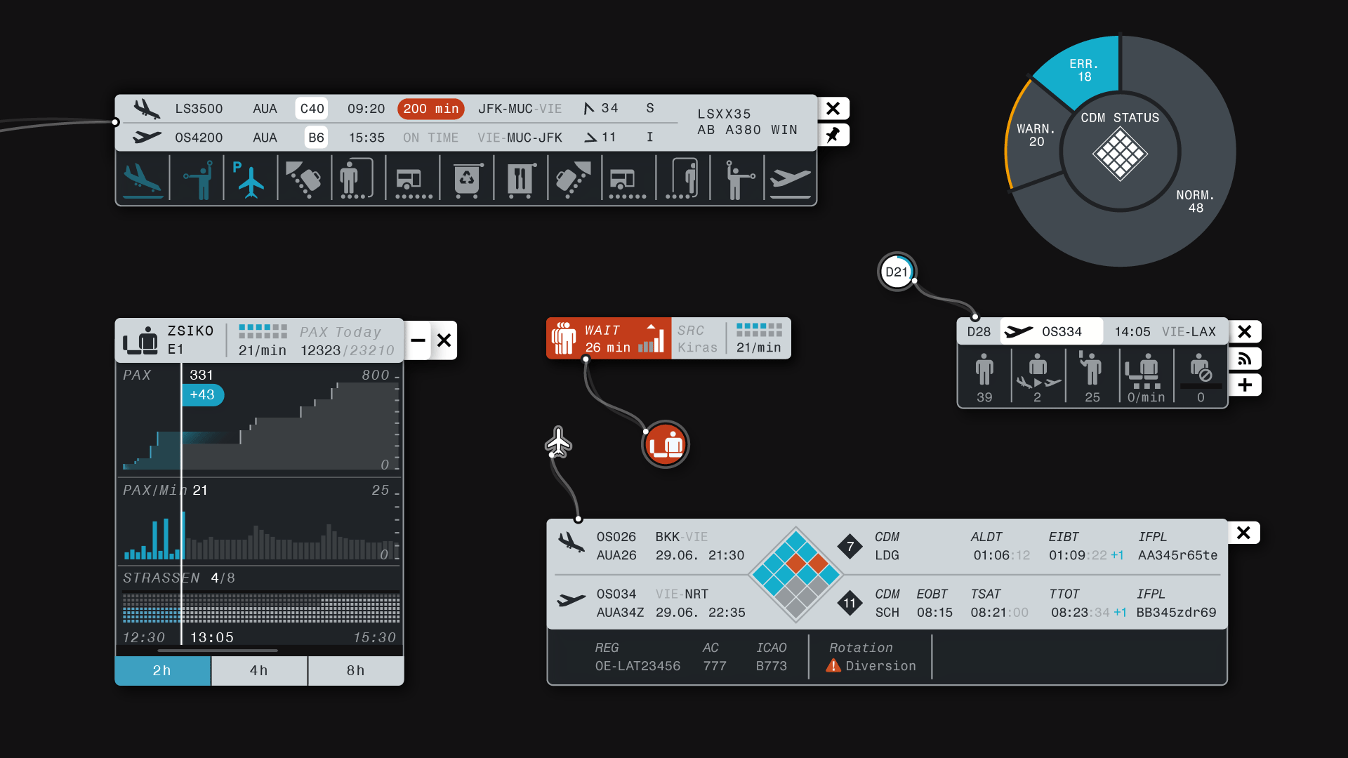 One of the major projects at Strukt was visionair (2010), a touchscreen-based interactive data visualisation for Vienna International Airport displaying the activities at the airport in realtime.